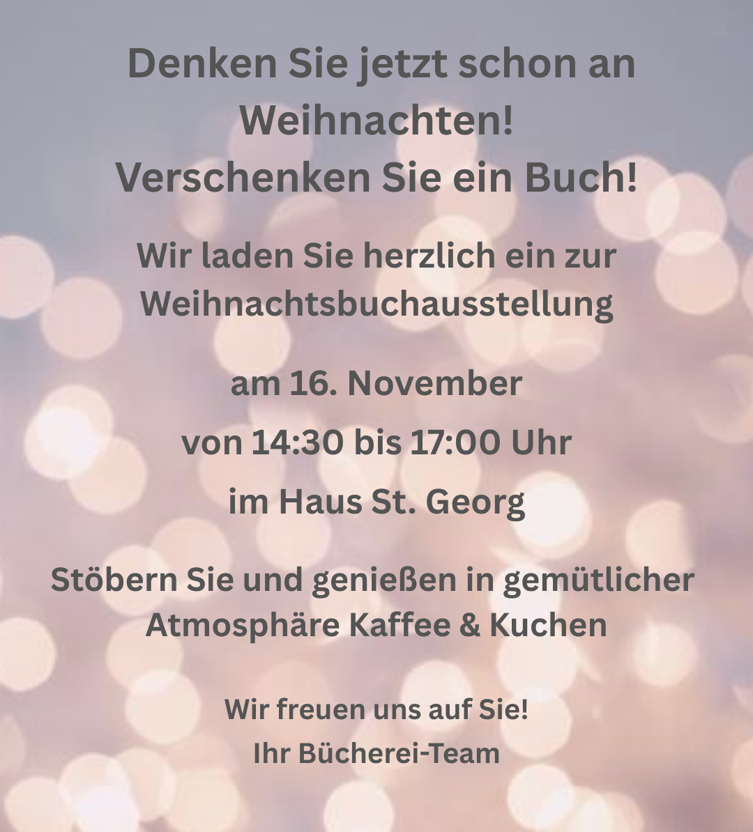 Ferien! Wir machen Ferien! Unsere Bücherei bleibt in den Sommerferien vom 18.07.2025 bis zum 11.08.2025 und Sonntags geschlossen. Wir wünschen eine schöne Sommerzeit!