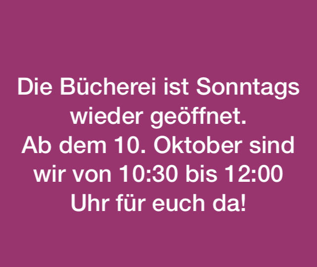 Die Bücherei ist Montags bis Donnerstags von